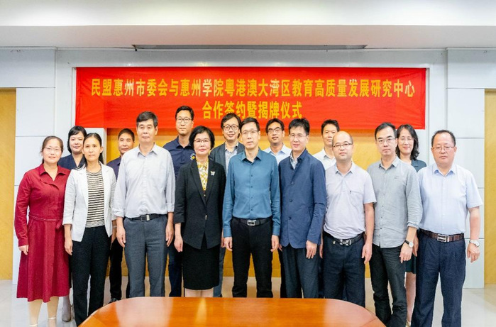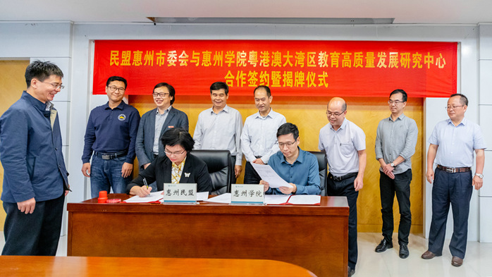 在经过前期多次地往来交流之后,为更有针对性地解决教育共性和难性问题,民盟惠州市委会与惠州学院进一步达成了共建“惠州民盟教育研究院”基地的共识。其后,与会领导嘉宾亦共同为“惠州民盟教育研究院”的正式成立举行揭牌仪式。