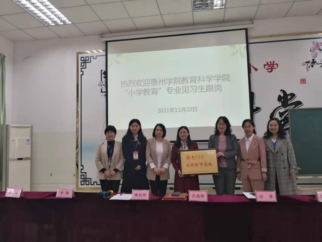 11月22日上午,教育科学学院谢桂新副院长、金艳博士携2020级小学教育专业1班全体学生前往惠州市富民小学进行惠州学院教学实践基地签约授牌仪式及见习见面会。惠州市富民小学吴艳晖校长、任萍副校长、袁卫平副校长及学校领导班子成员出席了签约及授牌仪式。