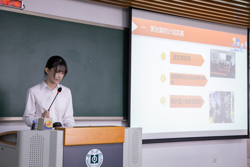 首先,主持人介绍到场的各位评委老师及比赛规则。紧接着9支参赛队伍按事先的抽签顺序依次上台汇报各班团日活动内容。各班精彩的策划书以及丰富的活动内容得到了各位评委的肯定,也赢得了在场人员的热烈掌声。通过各班团支书精彩的汇报,可以看出我院各班都积极参与到了团日活动中,同学们在此次比赛中将学科专业知识与活动紧密结合,各团员也能够更深刻地认识到党的性质和宗旨,培养爱国主义精神。