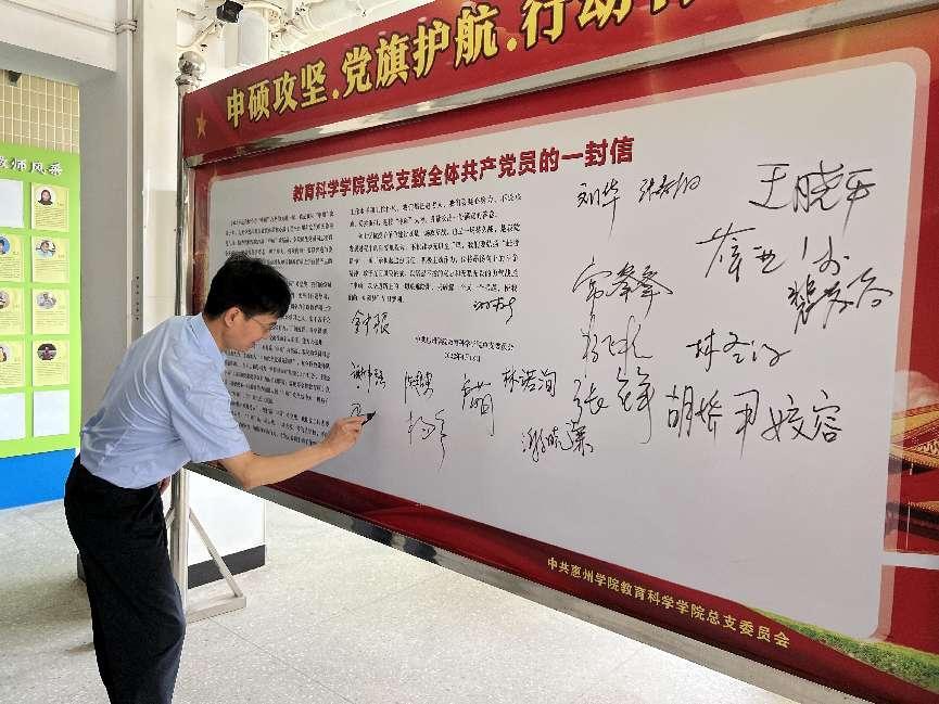 教工党员在宣传栏上签字