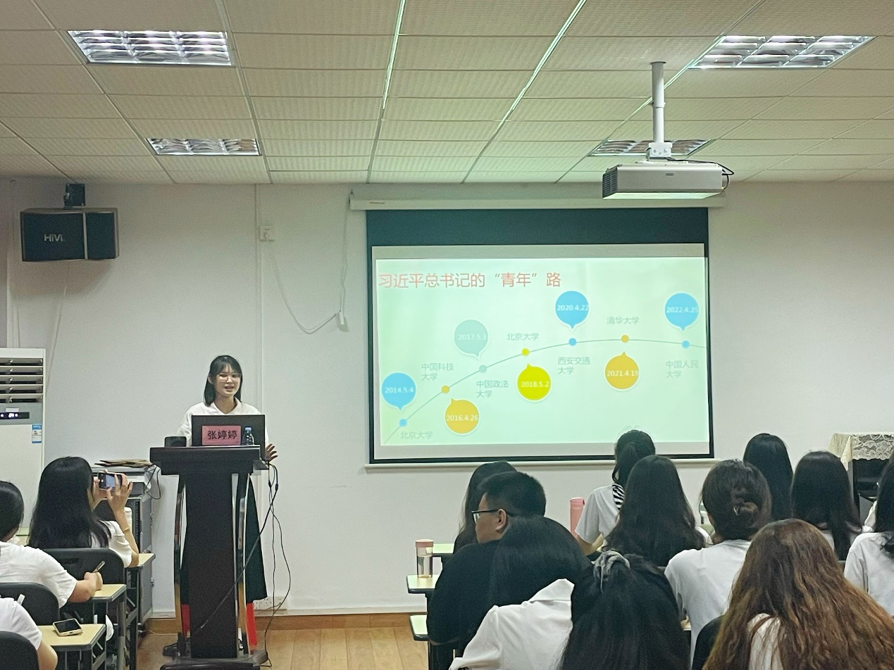 为了继续组织实施“青年马克思培养工程”,充分调动青马班各学员的积极性和向党性,为青马班学员们强基铸魂,我院特邀马克思主义学院理论宣讲团成员张婷婷于2022年5月14日在旭日楼614开展了第一次讲座,围绕《习近平与大学生朋友们》,讲述了五四期间习近平总书记于各大学的考察讲话。参与本次讲座的有青马班班主任杨婉琪及第三期青马班全体学员。