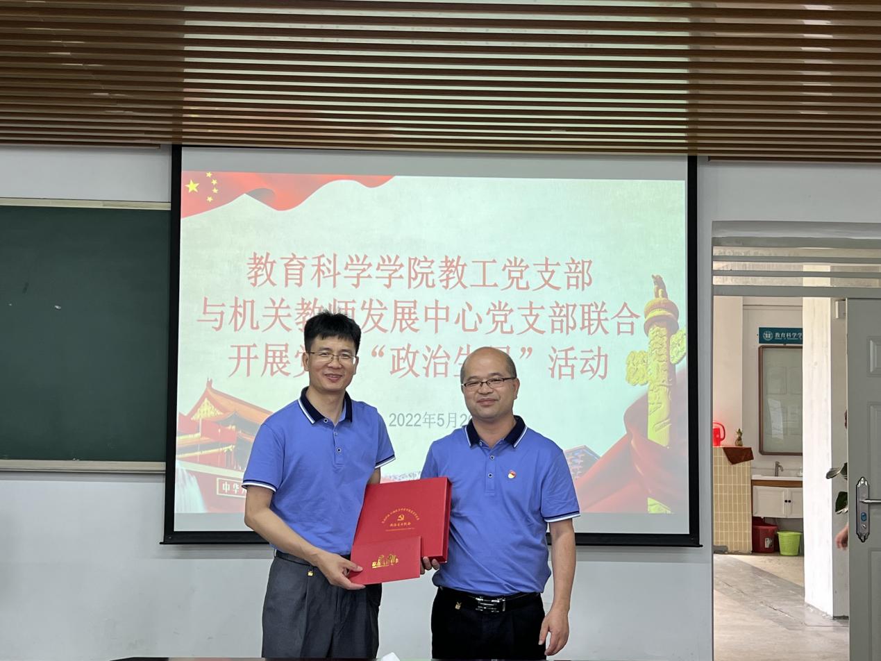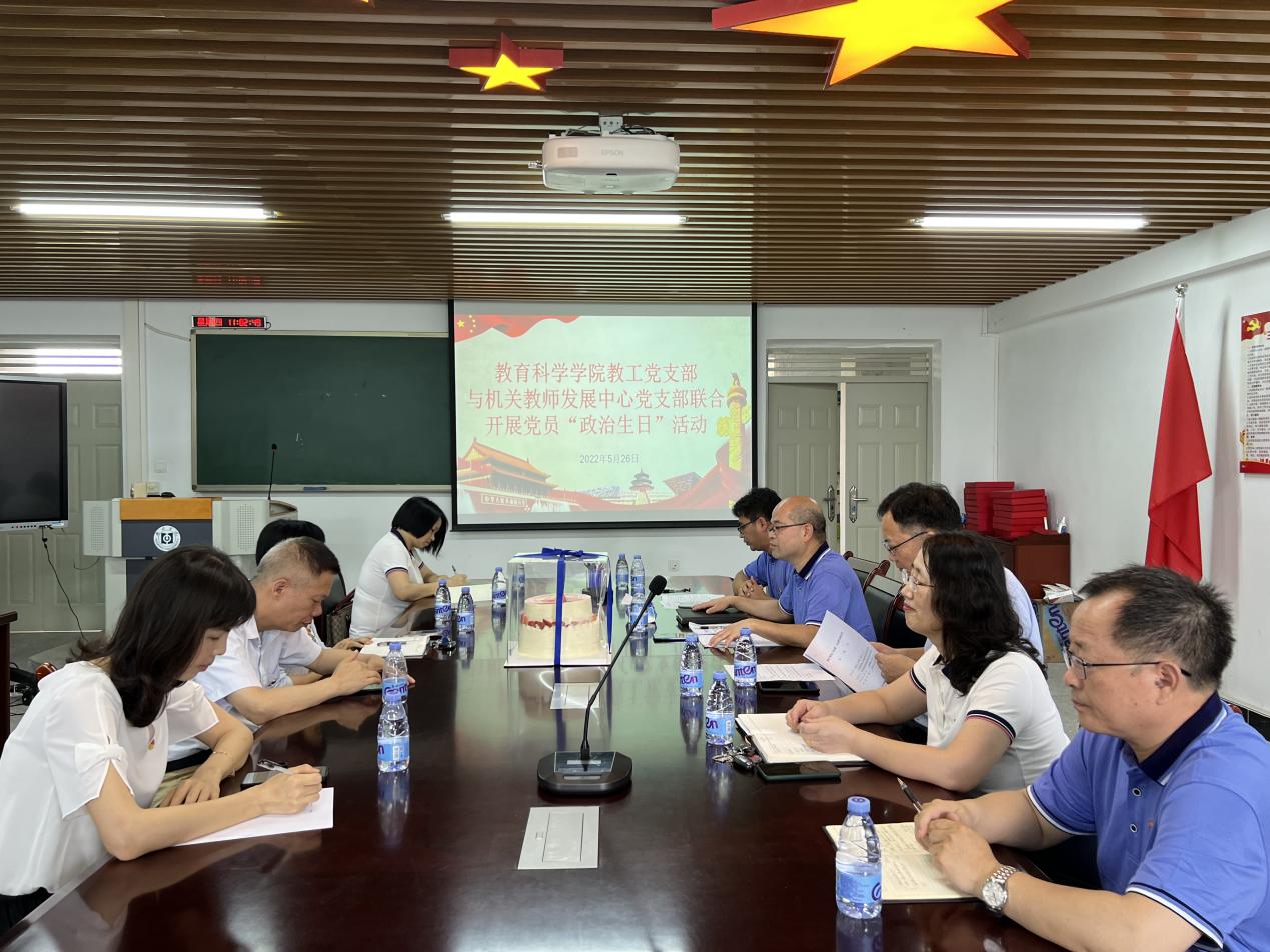 为进一步巩固党史学习教育成果,深入推进活动走深走实,根据《关于在全校推行党员“政治生日”制度的通知》惠院组织【2022】13号文件有关精神,认真强化党员的身份意识和责任意识,让广大党员始终保持党的先进性和纯洁性,5月26日上午,教育科学学院党总支组织学院教工党支部与机关教师发展中心党支部联合开展党员“政治生日”活动,激励广大教工党员铭记初心使命,顾大局,主动担当,进一步推动学校“申硕攻坚”取得实效。学院党政领导班子、教师发展中心班子成员和两个支部的教工党员参加了此次活动。活动由教科院党总支刘华副书记主持。