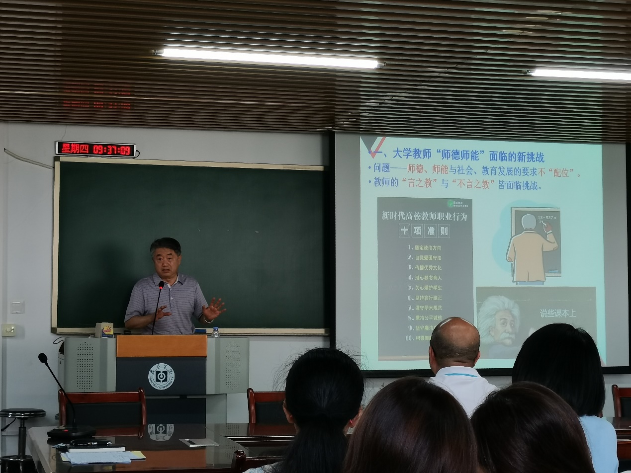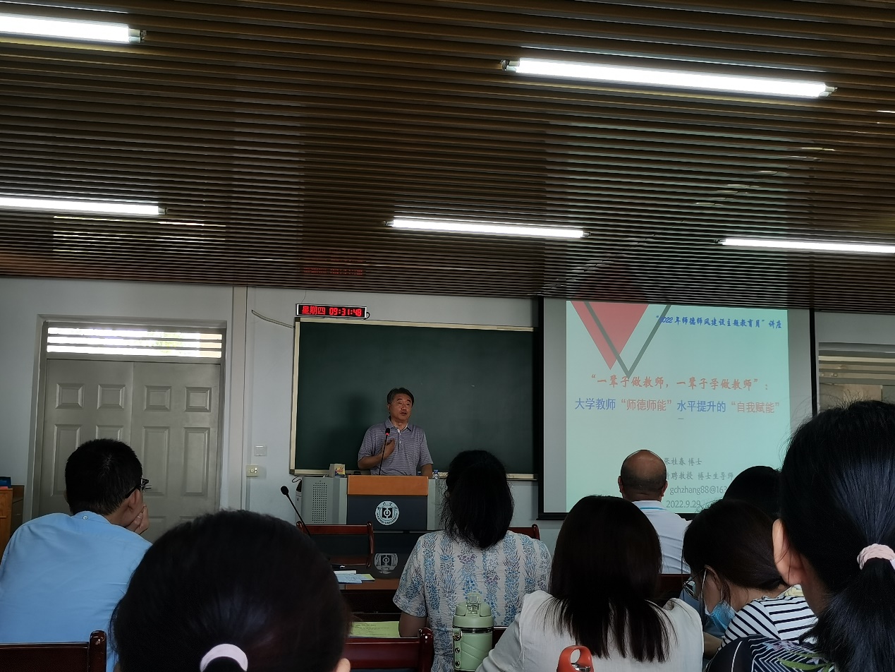 本次专题讲座由惠州学院特聘教授、博士生导师张桂春博士主讲。讲座主题是“‘一辈子做教师,一辈子学做教师’:大学教师‘师德师能’水平提升的‘自我赋能’”。