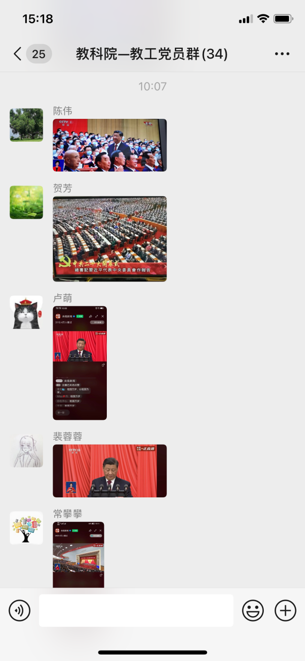 除了在621会议室线下观看党的二十大直播的参会人员外,学院的其他师生党员也分别在家线上收看了开幕式。观看二十大开幕会后,广大师生反响热烈、倍受鼓舞。大家一致认为,要不忘初心、牢记使命,高举中国特色社会主义伟大旗帜,全面贯彻习近平新时代中国特色社会主义思想,自觉担负起“为党育人、为国育才”的时代使命,汲取奋进力量,在新的赶考之路上继续创造令人刮目相看的新奇迹。
