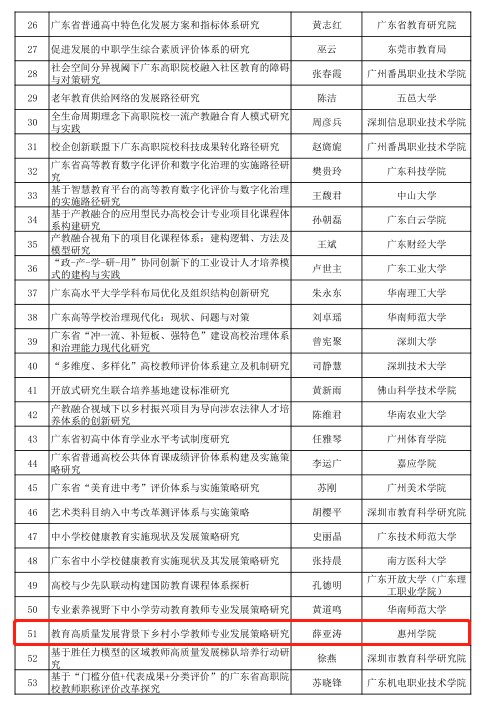 近日,广东省教育厅官网公布了2022年度教育科学规划课题(教育综合改革专项)立项名单,我院薛亚涛老师申报的课题《教育高质量发展背景下乡村小学教师专业发展策略研究》获得立项。(文:郭卓娴 审稿:陈伟)审核:陈伟 发布:谢晓谦