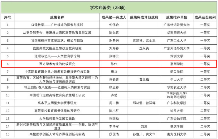 陈伟教授专著获得“广东省高等教育学会第二届高等教育研究优秀成果奖”一等奖