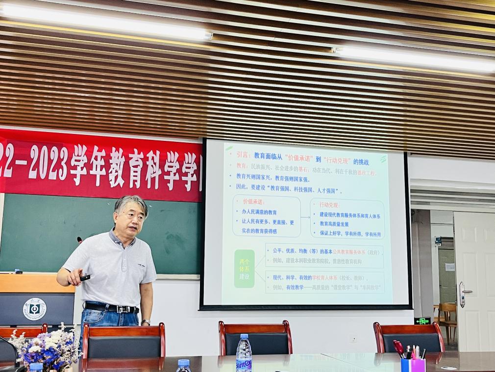 为深入贯彻党的二十大精神,落实教育科学学院教学高质量发展决策部署,11月24日上午,教育科学学院在旭日教学楼621会议室举办了“丰湖教育论坛”讲座。惠州学院特聘教授、原辽宁师范大学教育学院副院长张桂春教授为教育科学学院全体专任教师作了《大学(青年)教师课堂教学“基本功”历练:认知与行动》主题讲座。