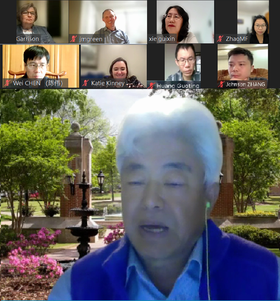 图1.美国北阿拉巴马大学(UNA)资深副校长Dr. Chunsheng ZHANG跟与会者说明项目执行的计划