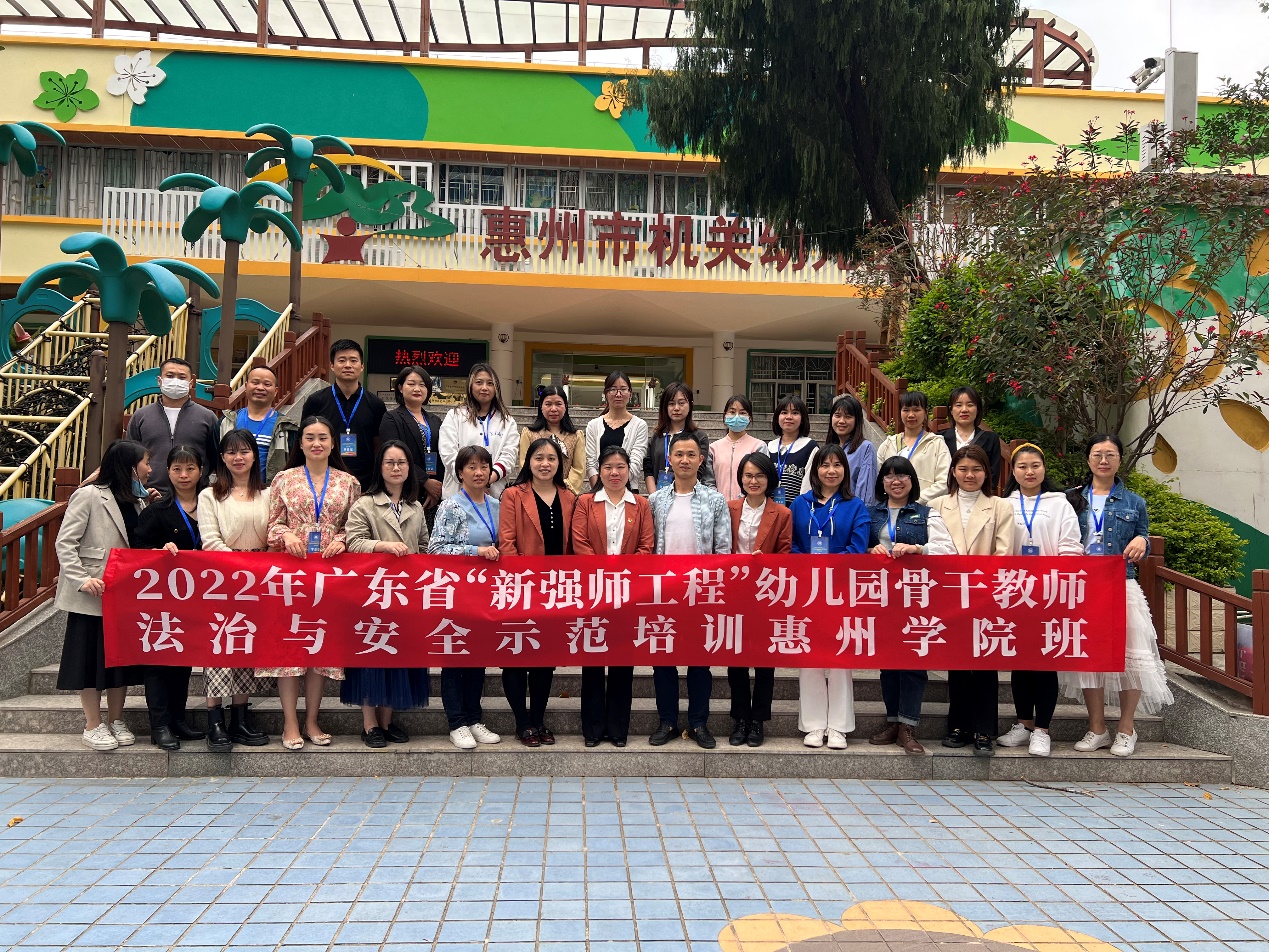 2023年3月14至15日,教育科学学院组织2022年广东省“新强师工程”幼儿园骨干教师法治与安全示范培训班的学员分别到惠州市机关幼儿园、惠州市机关第一幼儿园和惠州市机关第二幼儿园进行为期一天半的实地见学。参加人员有培训班负责人吴钢老师、副班主任张越老师以及培训班的全体成员。