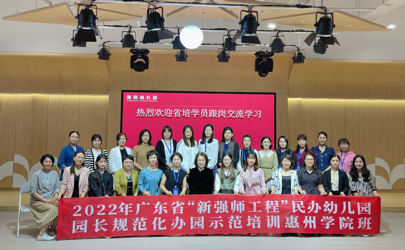 2023年3月20至23日,教育科学学院组织2022年广东省“新强师工程”民办幼儿园园长规范化办园示范培训班的学员,分别到深圳市莲花二村幼儿园、深圳市第九幼儿园、深圳市龙华区教育科学研究院幼教集团附属幼儿园和深圳幼儿园进行为期四天的跟岗学习。参加人员有培训班班主任黄国庭老师、副班主任麦日岸老师以及培训班的学员。