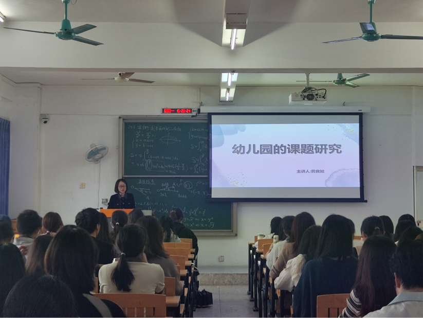 2023年4月3日下午,教育科学学院特邀惠州市机关第一幼儿园黄良如老师为2020级学前教育专业同学开展《学前教育研究方法》的嵌入式教学讲座,讲座由吴钢老师主持。
