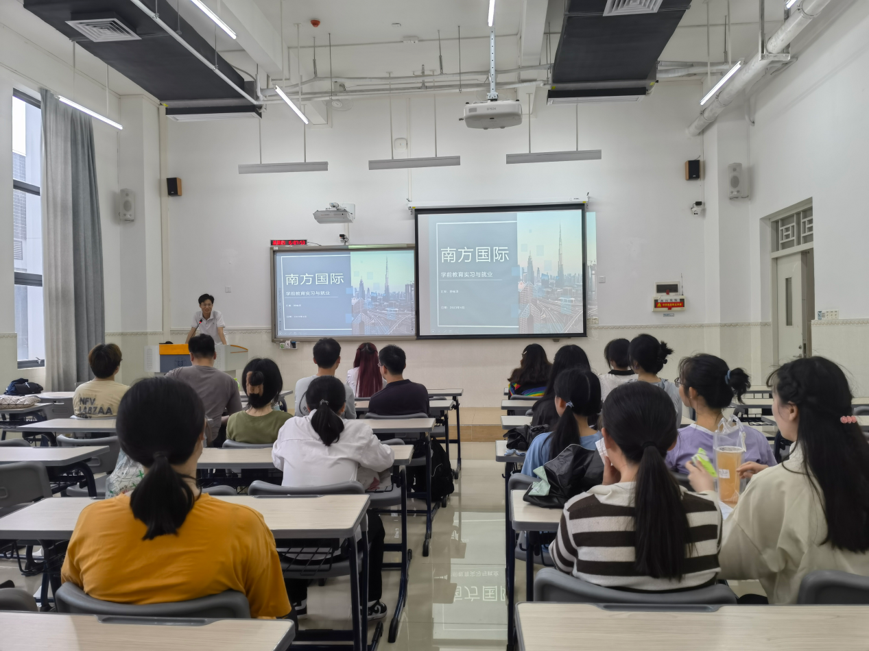 南方国际教育集团招聘会代表钟咏洋先生首先为到场的学前教育专业学生们简要介绍了公司概况以及集团合作的幼儿园概况,针对幼儿园岗位的职责内容、职业素养、注意事项、岗前服务、实习情况等部分进行了详细介绍。