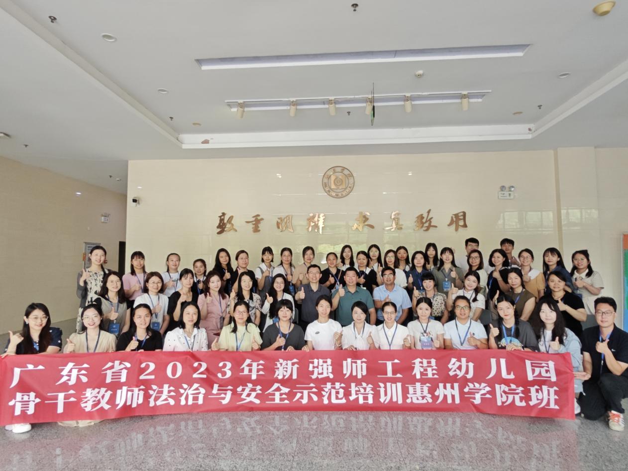 6月26日上午,广东省幼儿园教师法治与安全培训班在惠州学院旭日科技大楼B座-204举行了开班典礼。出席此次开班典礼的人员有惠州学院继续教育学院副院长邓伟浩、惠州学院教育科学学院党总支副书记刘华、教师法治与安全培训班班主任黄国庭及全体培训班学员。此次开班典礼由党总支副书记刘华主持。