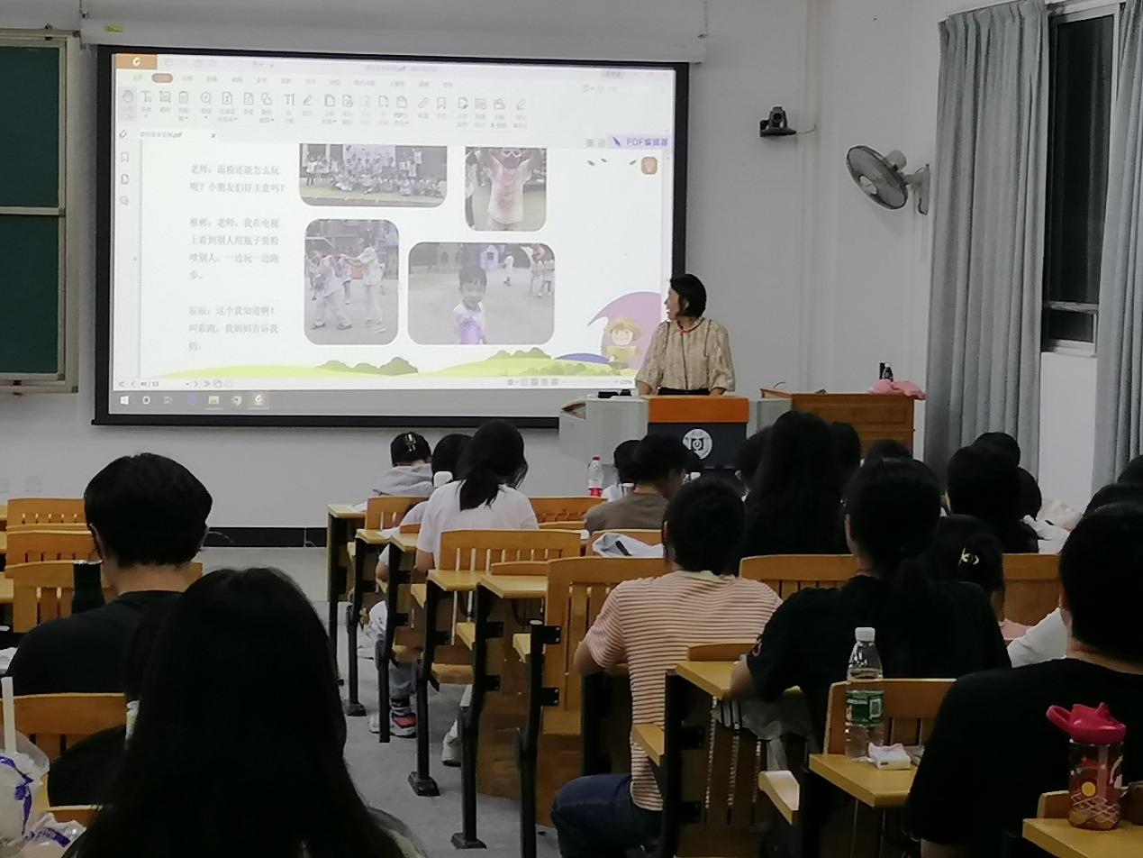 为强化教学效果、创新实践教学方式,学前教育系任课教师邀请惠州市惠城区东江学府第二幼儿园钱云园长,于2023年10月27日、12月11日分别为22级学前教育专业全体学生带来两场精彩的讲座。讲座的主题为:幼儿园“田园耕读”课程资源开发与应用研究。