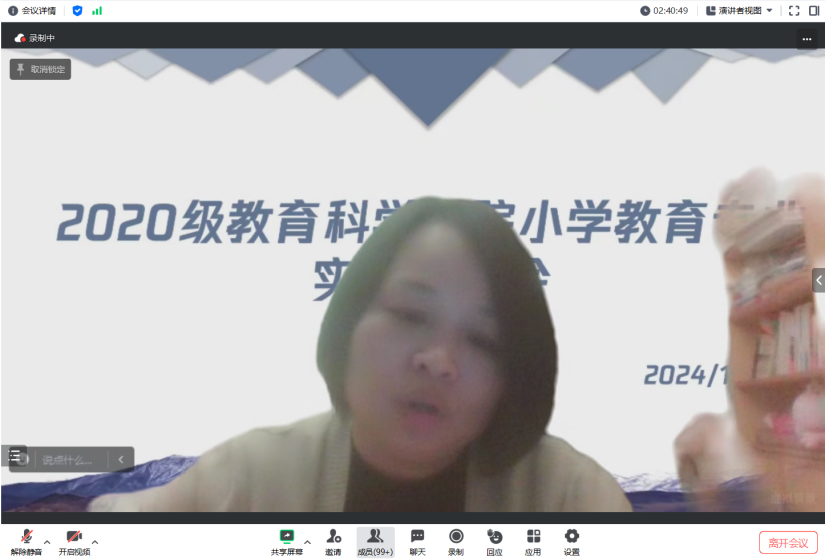 为深化实习效果,提高小学教育专业人才培养质量,2024年1月13日晚,小学教育系通过腾讯会议召开了2020级小学教育专业实习总结会。参加本次会议的有教育科学学院谢桂新副院长、颜志强副院长、小学教育专业的全体校内实习指导老师和2020级全体同学。大会由范雨欣、黄棋雄同学主持。