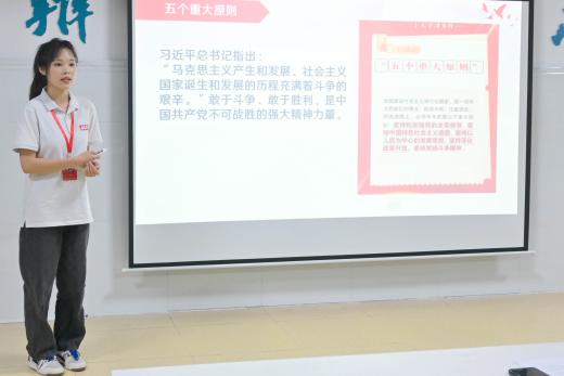 首先由马克思主义学院宣讲团的周林希、雷子鹏同学进行主题为“勇于自我革命 发扬斗争精神”的宣讲。党课学习作为一项重要的思想政治工作,不仅加强了同学们的党性修养、政治意识与思想觉悟,还激发了同学们的爱国情怀与责任意识,为我院团委、学生会与新闻中心的学生干部全心全意为同学服务奠定良好的思想基础。