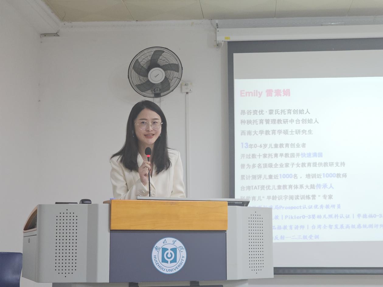 12月4日晚上,教育科学学院在田家炳大楼202教室举办了创客沙龙活动,此次活动邀请了从事学前教育行业、创办多所托育园的雷素娟园长进行创业经历的分享,与惠州学院学前教育的同学们共同探讨创业之路的机遇与挑战。