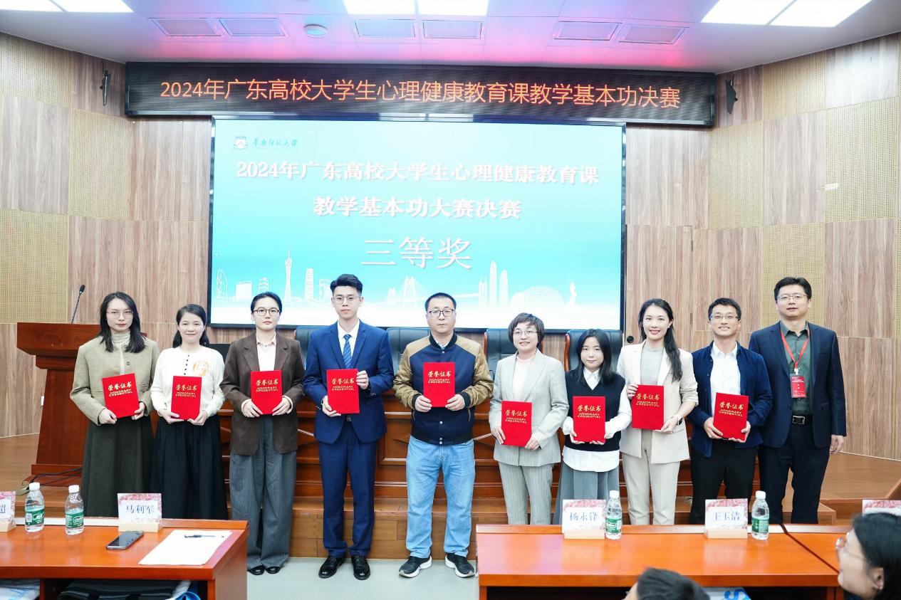 2024年12月7日,广东省高校大学生心理健康教育课教学基本功决赛在华南师范大学顺利结束,我院教师王晓平荣获三等奖。本次教学比赛由广东省教育厅主办,各高校心理健康教育工作区域中心协办,广东省高校思政研究会高校心理健康教育工作专业委员会和华南师范大学承办。
