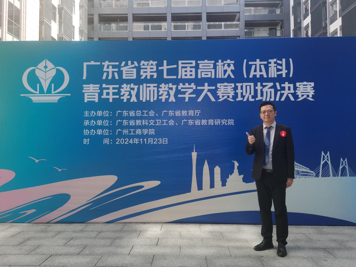 2024年11月23日,广东省第七届高校(本科)青年教师教学大赛决赛圆满落幕,我院青年教师郑秋强表现出色,在本届大赛中荣获一等奖,成功实现我校首次获得广东省青年教师教学大赛一等奖的重大突破。