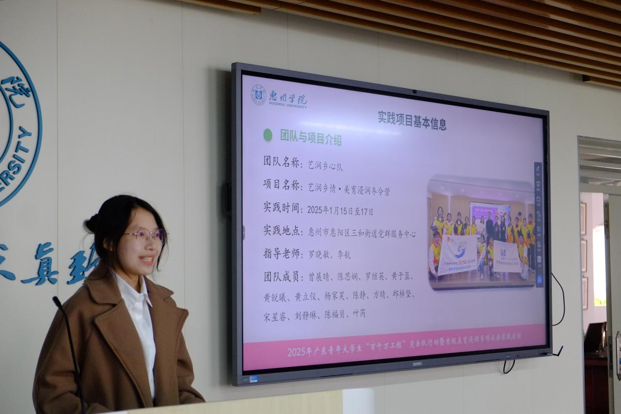 为促进学生团队对寒假社会实践活动的总结与反思,扩大寒假社会实践活动成果的影响,增强学生集体认同感以及提高学生的展示能力和表达能力,惠州学院教育科学学院于2025年2月21日顺利开展了“寒假实践活动分享会”。本次分享会邀请了辅导员谢晓谦老师、黄月云老师担任评委。