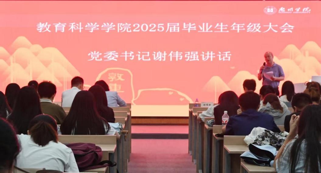 为帮助毕业生更好地了解就业形势,明确就业方向,4月28日教育科学学院在旭日科技楼A座1303召开了毕业生年级大会。教育科学学院党委书记谢伟强、副书记钟小川、副院长金艳、学前教育系主任黄国庭、班主任尹姣容、班主任张越、辅导员黄月云出席会议,学院党委副书记钟小川主持会议。