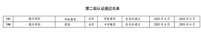 近日,教育部办公厅发布《关于公布2025年通过普通高等学校师范类专业认证及认证中期审核专业名单的通知》(教师厅函〔2025〕18号),我院学前教育专业通过教育部师范类专业第二级认证,认证结论有效期为2025年9月至2031年8月。