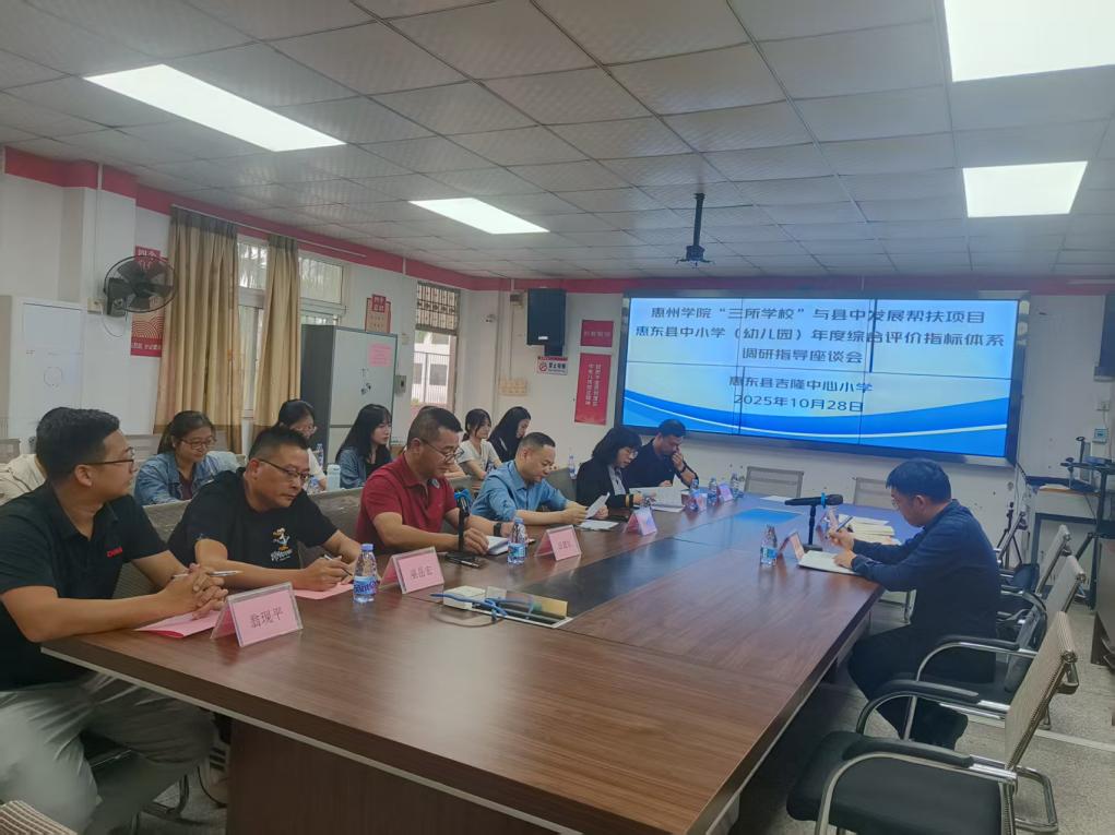 本次调研了解惠东县吉隆中心小学与平海中心小学综合评价工作现状,为帮扶工作持续推进提供了宝贵的第一手资料。学院将持续推进精准调研与指导工作,基于惠东县教育的实际发展情况,科学制定惠东县中小学(幼儿园)年度综合评价体系,助力惠东县基础教育高质量发展。