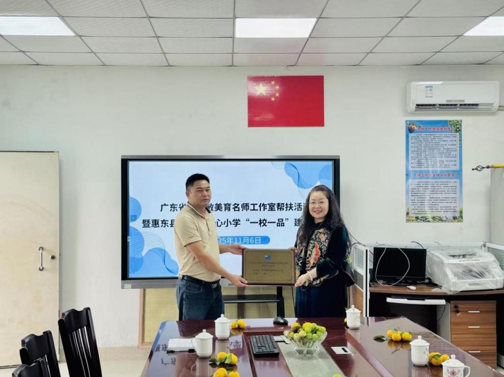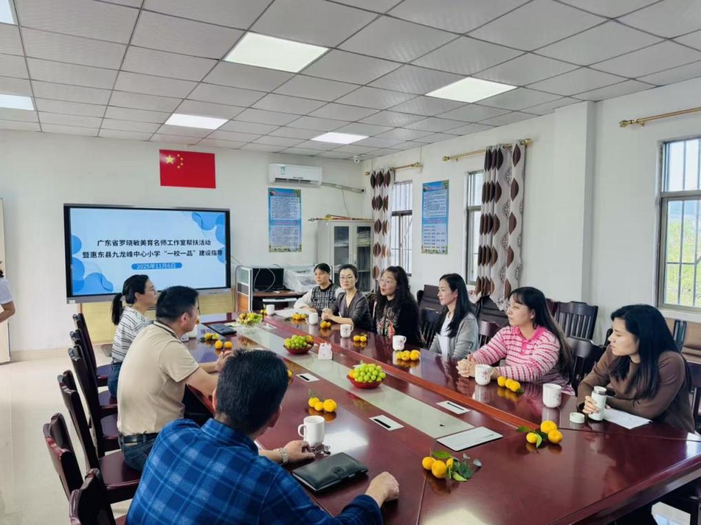 为深入推进“一校一品”校本课程建设,助力乡村学校美育特色发展,2025年11月6日,广东省美育名师工作室主持人罗晓敏副教授携成员王艳、段飞艳、李白夜、黄玉婷老师一行,赴惠东县九龙峰中心小学开展专项帮扶活动。本次活动以设立“惠东分工作室”、共建“惠东渔歌”本土非遗美育课程为核心,通过精准对接、深度研讨,推动乡村学校美育特色发展。