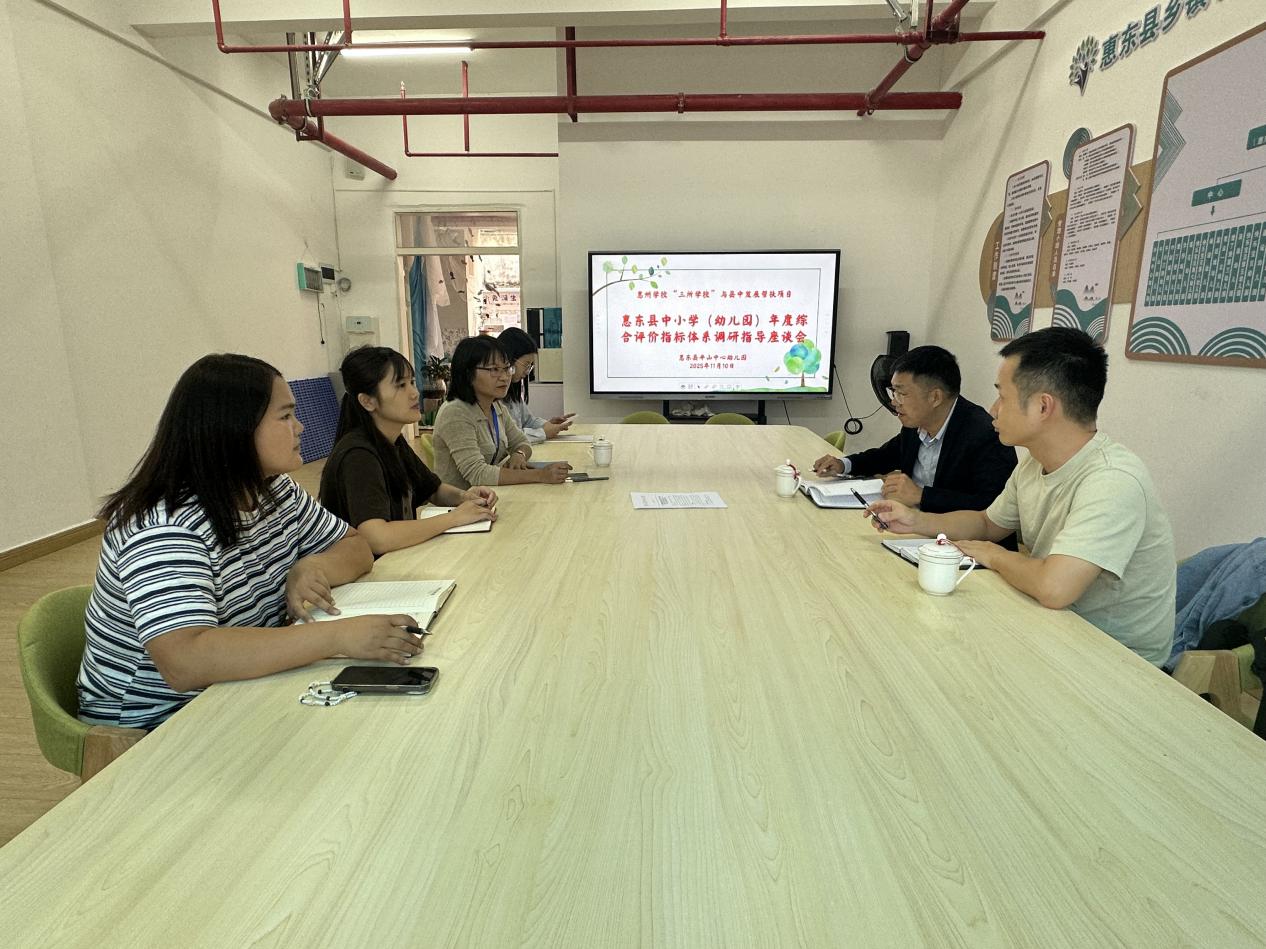 为科学构建惠东县中小学(幼儿园)年度综合评价体系,精准推进"三所学校"帮扶工作落地,11月10日上午,教育科学学院王贤文副院长、吴钢博士赴惠东县开展帮扶指导工作,先后来到平山中学和平山中心幼儿园,通过座谈交流深入了解各学段教育评价现状,为优化县域教育评价机制提供实践依据。