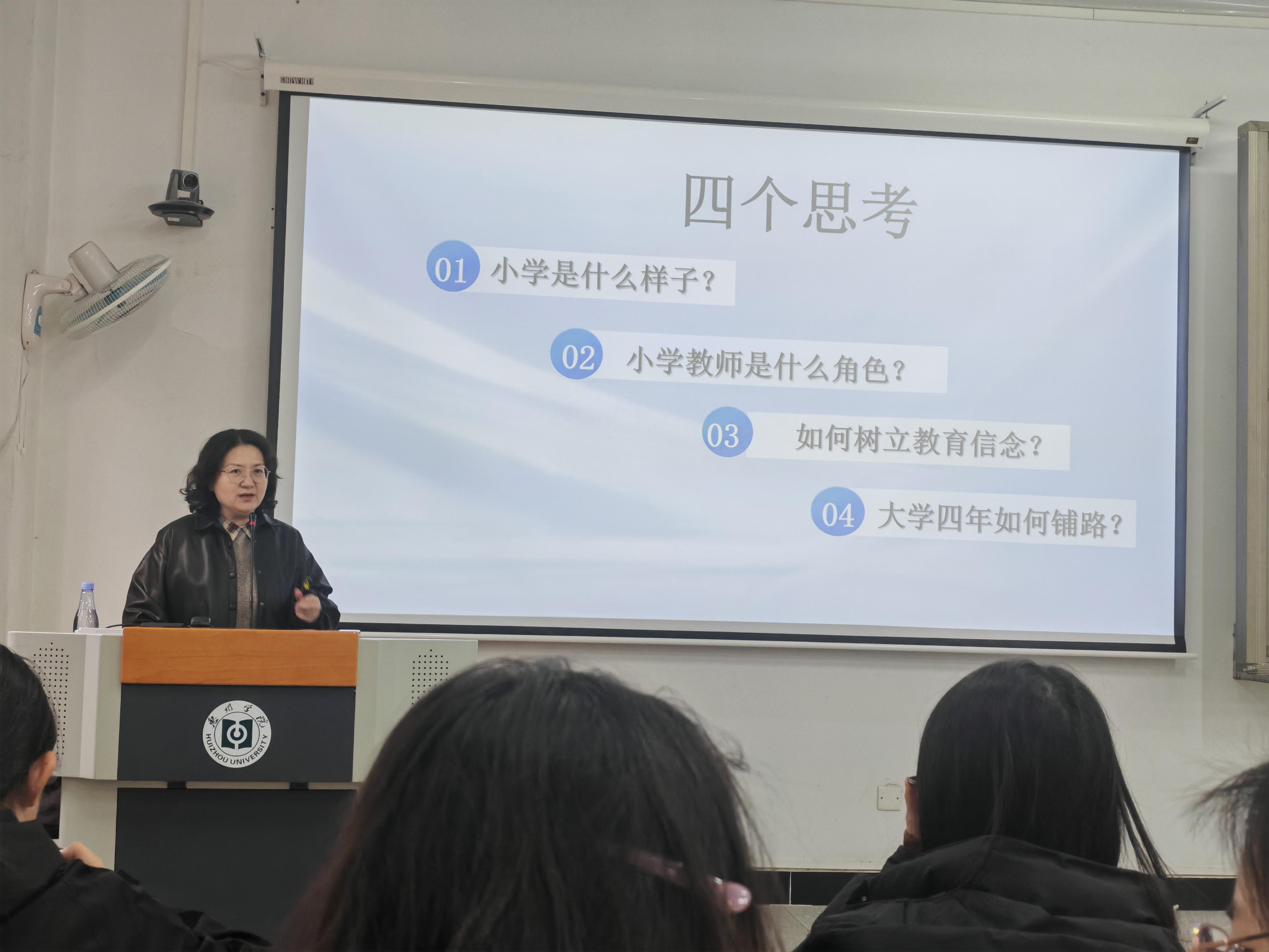 整场讲座内容翔实,情感真挚,为小学教育专业大一新生勾勒了清晰的职业蓝图,激发了同学们未来从事小学教育事业的深切向往与坚定信念。