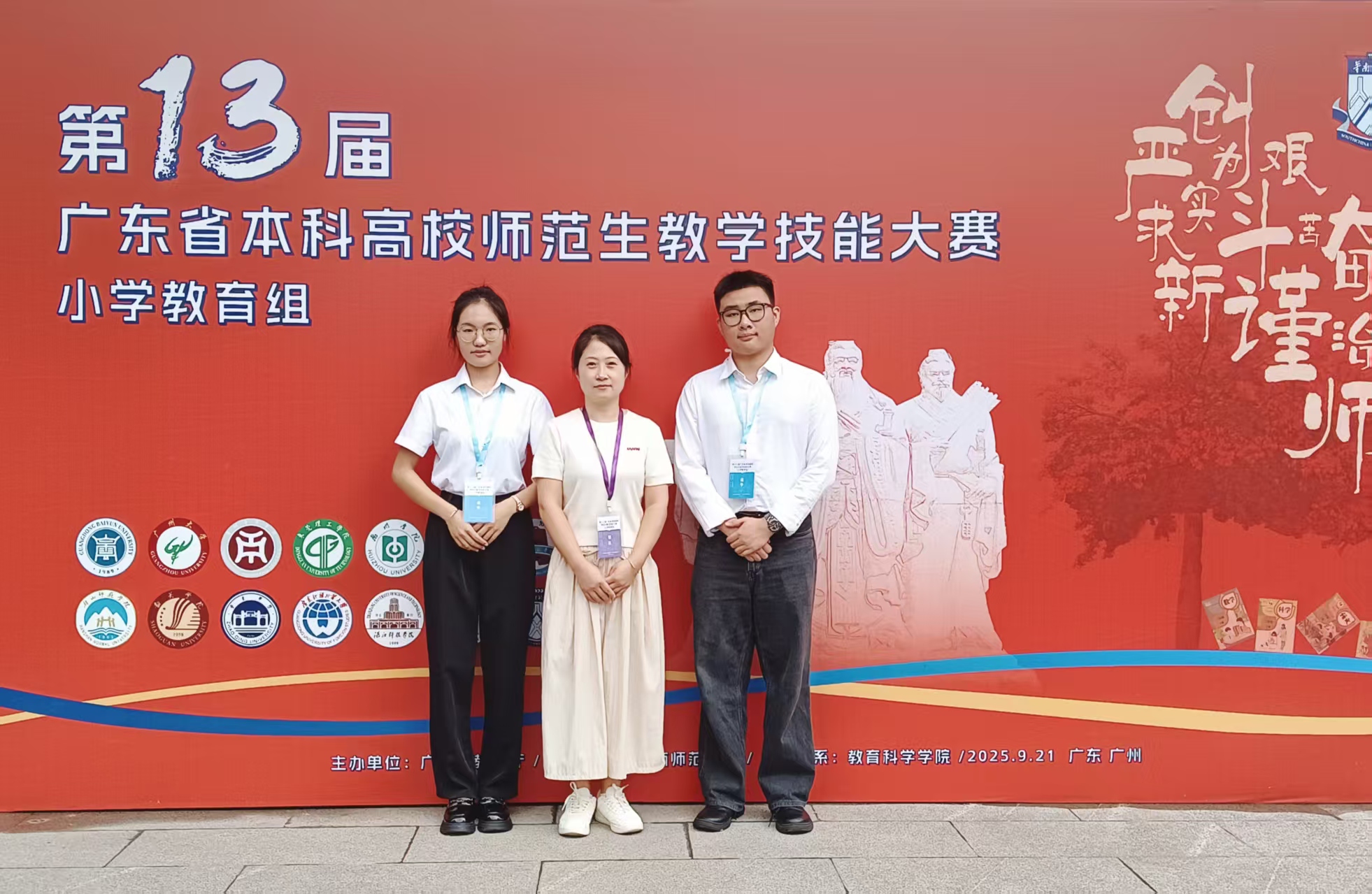 由广东省教育厅主办的第13届广东省本科高校师范生教学技能大赛在华南师范大学圆满落幕。本次大赛由华南师范大学承办,来自省内各高校的师范生选手在决赛中同台竞技,展现了卓越的师范素养与教学能力,彰显了我省持续推进“新师范”建设的育人成效。我院学子在小学教育组与学前教育组两个组别中均取得优秀成绩。
