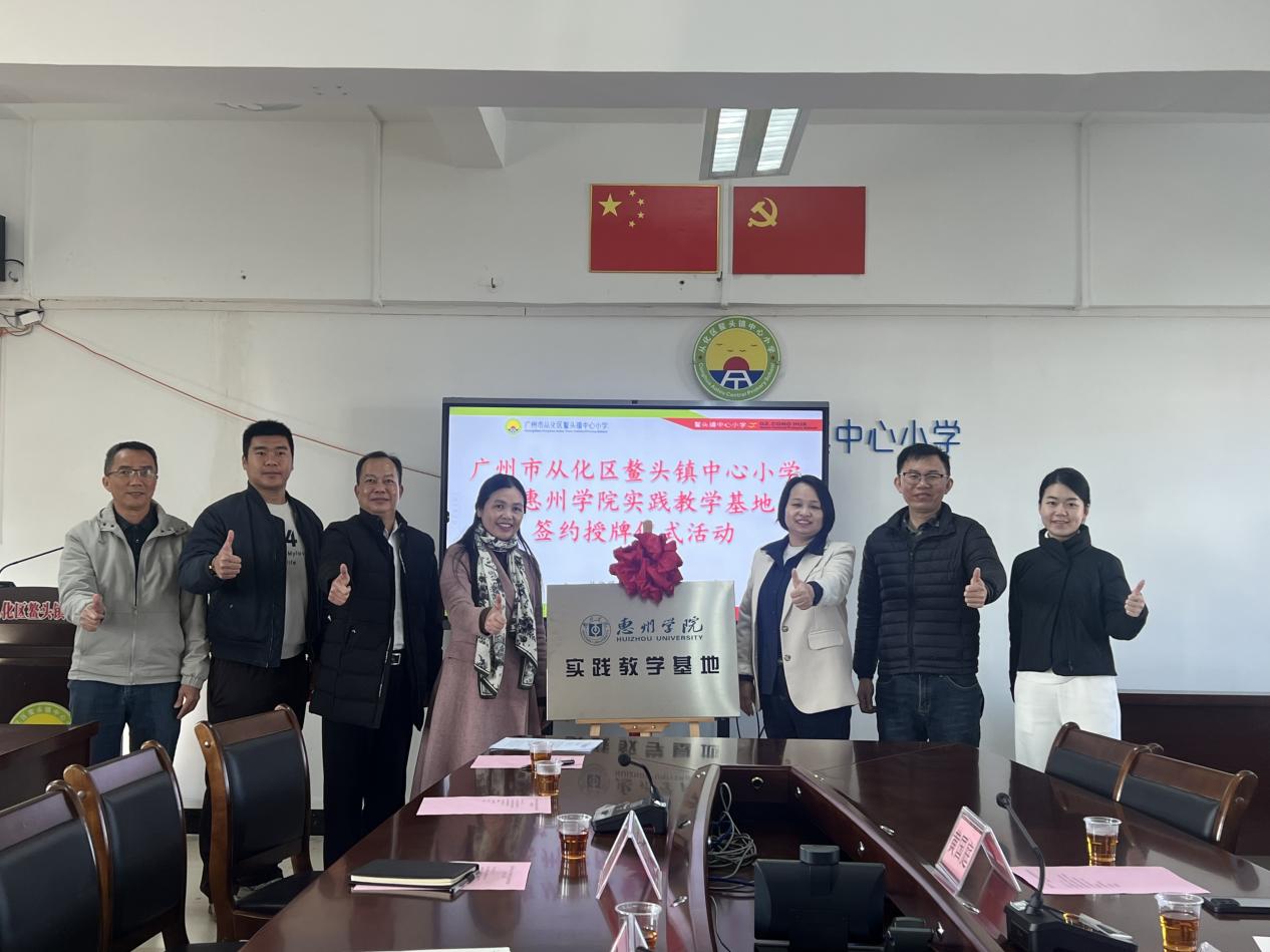 为深化协同育人机制,搭建高校与基础教育一线学校资源共享、优势互补的合作平台,2026年1月7日上午,惠州学院与广州市从化区鳌头镇中心小学实践教学基地签约挂牌仪式在鳌头镇中心小学隆重举行。惠州学院教育科学学院副院长金艳、教育科学学院黄国庭主任及谢晓谦老师,广州市从化区鳌头镇教学指导中心主任邓志远,鳌头镇中心小学副校长林榕梅及鳌头镇中心小学领导班子及教师代表出席了本次仪式 。
