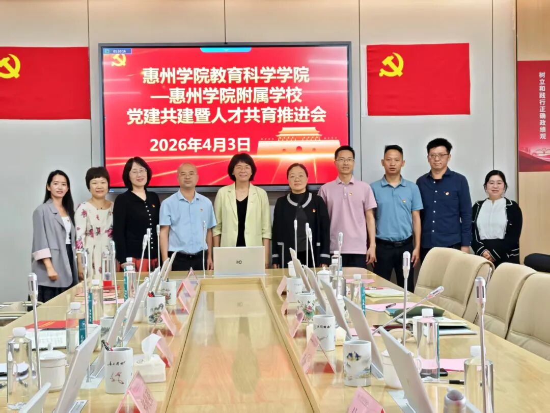 为深化校地协同、强化党建引领,筑牢育人根基,推动树立和践行正确政绩观学习教育走深走实、取得成效,4月3日上午,中共惠州学院教育科学学院委员会与中共惠州学院附属学校党支部委员会召开党建共建暨人才共育推进会,在惠州学院附属学校行政楼五楼会议室举行。惠州学院党委组织部正处级组织员、机关党委书记邓淑容,教育科学学院党委书记谢伟强,党委副书记、院长谢桂新等校领导及附属学校党支部书记、校长陈剑等校领导及双方党员代表参会。会议由惠州学院附属学校党支部副书记兼纪检委员徐文科主持。