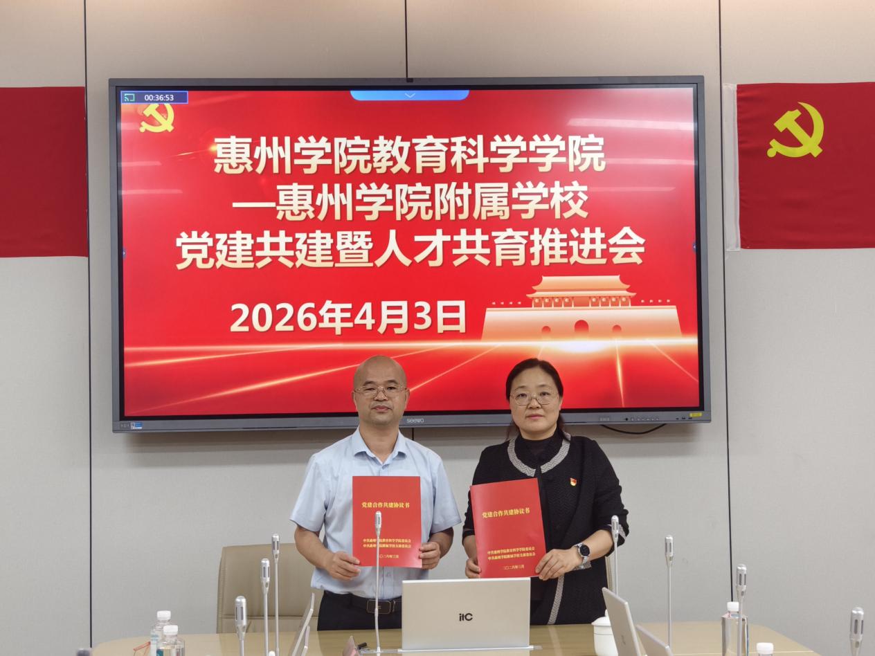 为深化校地协同、强化党建引领,筑牢育人根基,推动树立和践行正确政绩观学习教育走深走实、取得成效,4月3日上午,中共惠州学院教育科学学院委员会与中共惠州学院附属学校党支部委员会召开党建共建暨人才共育推进会,在惠州学院附属学校行政楼五楼会议室举行。惠州学院党委组织部正处级组织员、机关党委书记邓淑容,教育科学学院党委书记谢伟强,党委副书记、院长谢桂新等校领导及附属学校党支部书记、校长陈剑等校领导及双方党员代表参会。会议由惠州学院附属学校党支部副书记兼纪检委员徐文科主持。